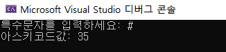 ▶ 사용자가 입력한 특수문자를 정수형으로 형변환 시키면 아스키코드값을 출력할 수 있음