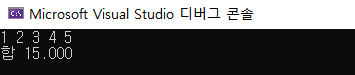 사용자에게 실수 5개를 입력 받아 합을 구하는 프로그램을 작성해보자.