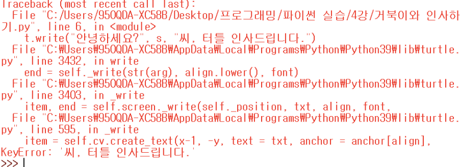 t.write("안녕하세요?" + s + "씨, 터틀 인사드립니다.")