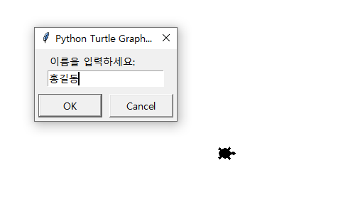 name=turtle.textinput("", "이름을 입력하세요.")