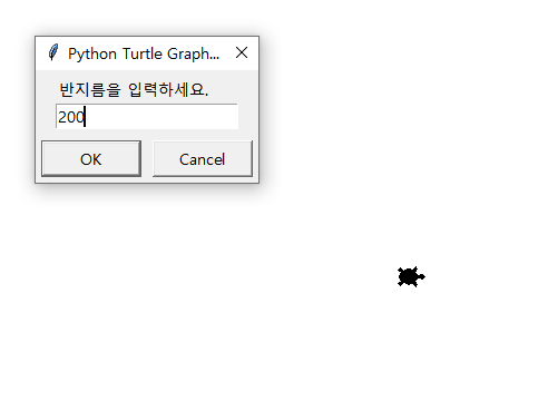 radius= turtle.textinput("", "반지름을 입력하세요.")
