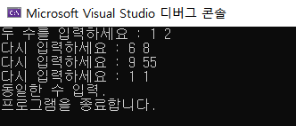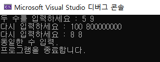 printf("동일한 수 입력.\n프로그램을 종료합니다.\n");