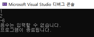 printf("음수는 입력할 수 없습니다.\n");