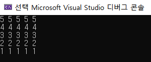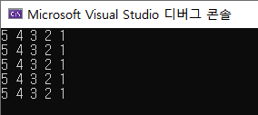 ▶ for (a=5; a>=1; a--) : 반복문이 실행되는 동안 5부터 1을 출력함(세로)