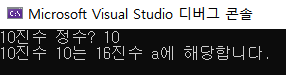 printf("10진수 %d는 16진수 %x에 해당합니다.\n", n, n);