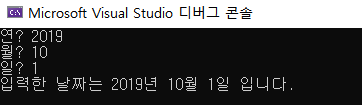 printf("입력한 날짜는 %d년 %d월 %d일 입니다.\n", year, month, day);