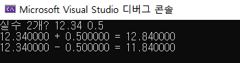 사용자로부터 실수 2개를 입력받아 합과 차를 구해 출력하는 프로그램을 작성해보자.