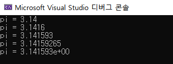 원주율 파이값이 3.14159265라고 할 때, 파이값을 여러 가지 방법으로 출력하는 프로그램을 작성해보자.