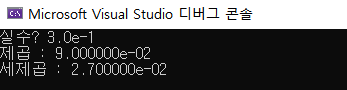 printf("세제곱 : %e\n", sejegob);