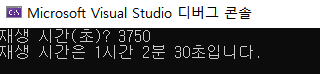 printf("재생 시간은 %d시간 %d분 %d초입니다.", hour, min, s);