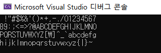 ASCII 코드 중 0~31번, 127번은 제어 문자이므로 32~126번에 할당된 문자들만 출력하는데,