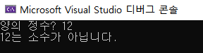 정수를 입력받아 정수가 소수인지 검사하는 프로그램을 작성해보자.
