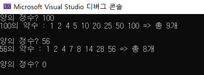 이 함수를 이용해서 입력받은 정수의 약수를 구해 출력하는 프로그램을 작성해보자.