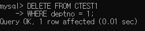 ▶ CTEST1 테이블에서 deptno 컬럼 값이 1인 행을 모두 삭제