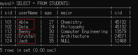 → 이름에 a가 들어가는 학생이 누구인지 확인 가능