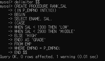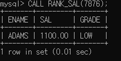 ▶ 스토어드 프로시저 이름은 RANK_SAL로 지정