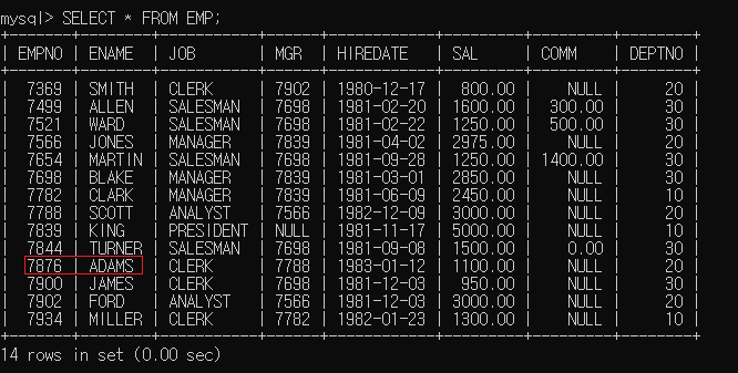 ▶ 사원번호 7876인 사원 호출