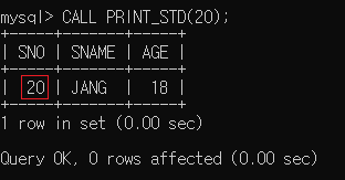 CALL ADD_STD(20, 'JANG', 18);