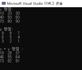 printf("x + y 행렬 : \n");