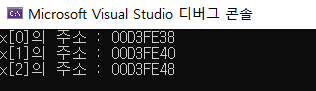 printf("x[%d]의 주소 : %p\n", i, &x[i]);