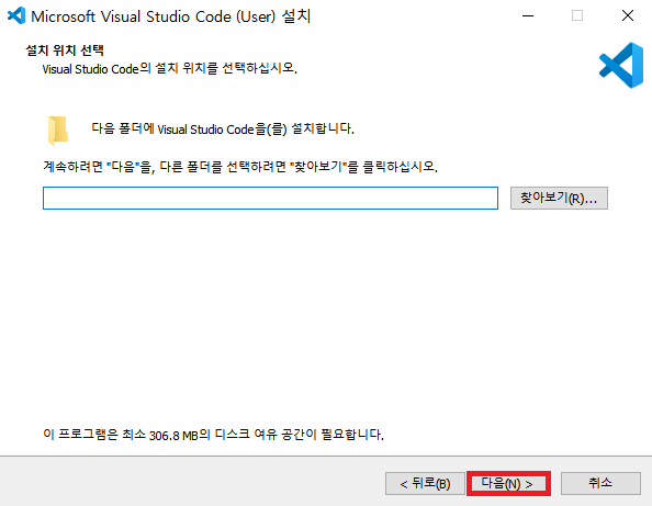 4. 다운 받을 경로 선택 후 다음으로 이동