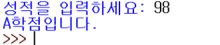 학생의 시험 점수를 물어보고 시험 점수가 90점 이상이면 A, 80점 이상이면 B, 70점 이상이면 C, 60점 이상이면 D, 그 외의 점수이면 F를 학점으로 주는 프로그램을 작성해보자.