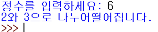 사용자로부터 정수를 입력받아서 이 정수가 2와 3으로 나누어떨어질 수 있는지를 출력하도록 프로그램을 작성해보자.