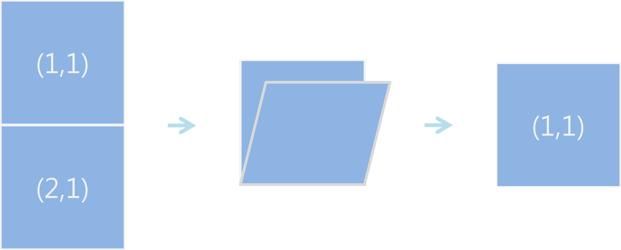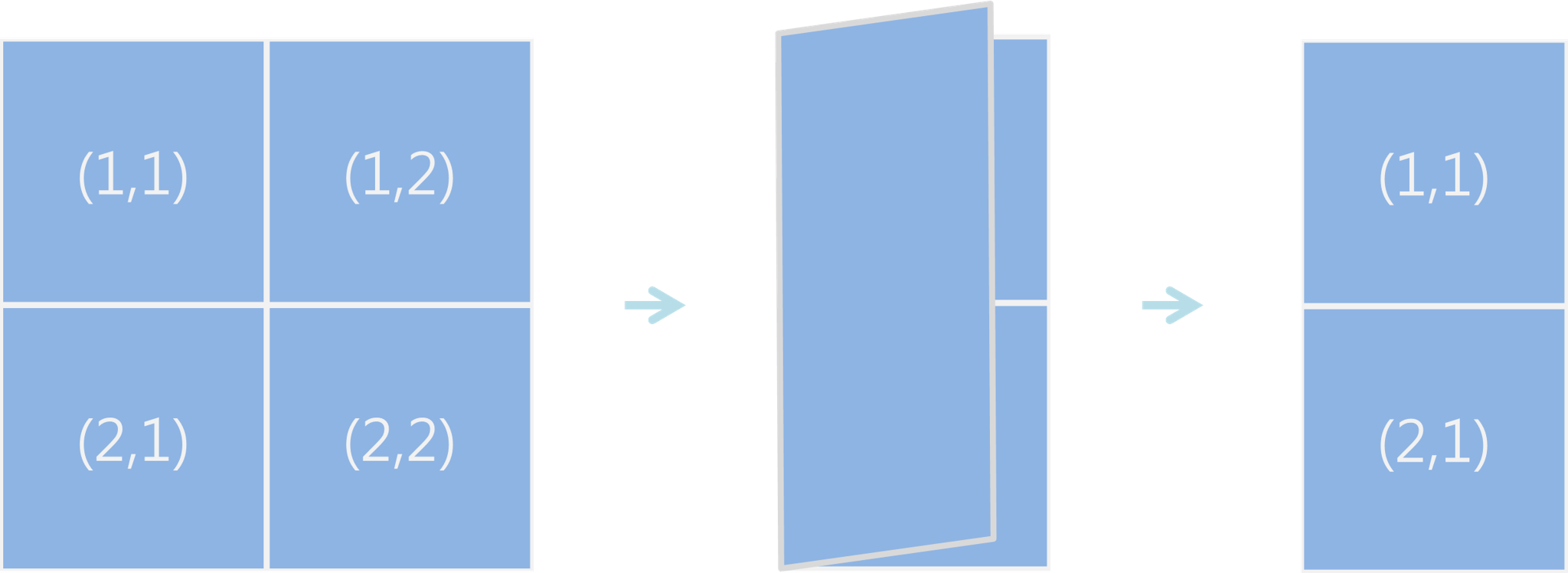 - 겹치는 두 칸에 있는 수를 서로 더한다. 위 그림에서는 (1, 1)과 (1, 2)의 두 칸이 겹치고, (2, 1)과 (2, 2)의 두 칸도 겹치는 부분이다.