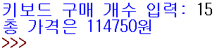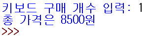 키보드 하나의 가격은 8,500원이며 5개 이상 구매하면 10% 할인을 받는 프로그램을 출력해보자.