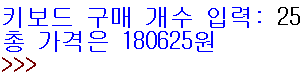 ▶키보드 25개 구입: 212,500원에서 15% 가격인 31,875원을 할인 받아 180,625원이 됨