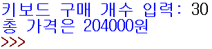 ▶키보드 30개 구입: 255,000원에서 20% 가격인 51,000원을 할인 받아 204,000원이 됨