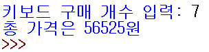 ▶키보드 7개 구입: 59,500원에서 5% 가격인 2,975원을 할인 받아 56,525원이 됨