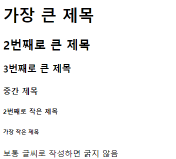 <h1>가장 큰 제목</h1>