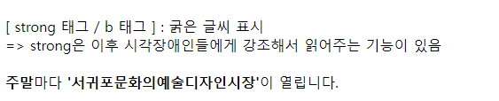 => strong은 이후 시각장애인들에게 강조해서 읽어주는 기능이 있음<br><br>