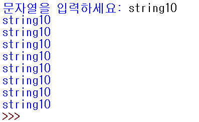 ▶ 사용자가 입력한 문자열을 문자열의 길이만큼 곱할 때 각각 \n(다음 줄로 넘어감), " "(공백)을 이용함