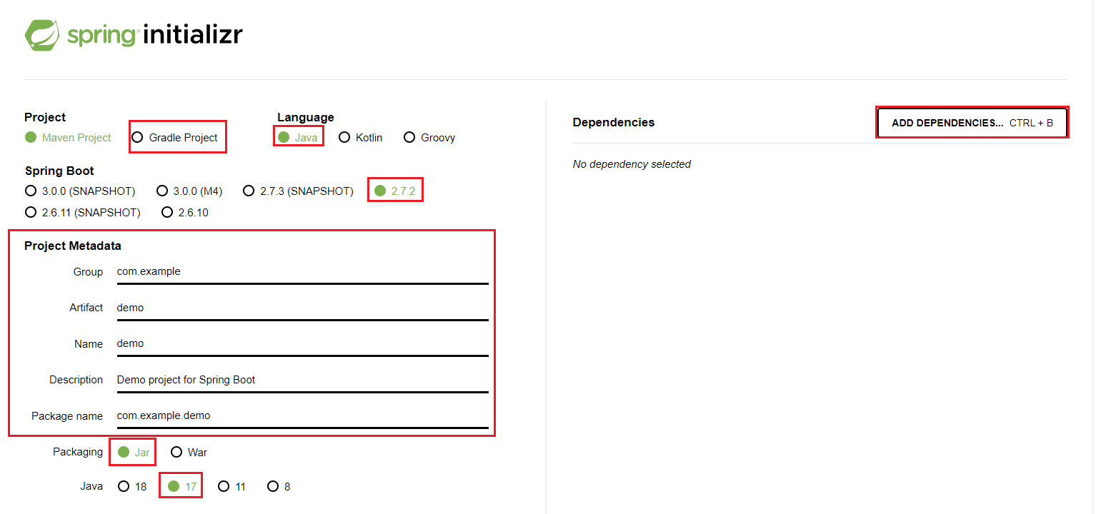 ▶ Spring Boot 버전에 SNAPTION 혹은 M숫자이라고 나와있는 것은 아직 정식 버전이 아님