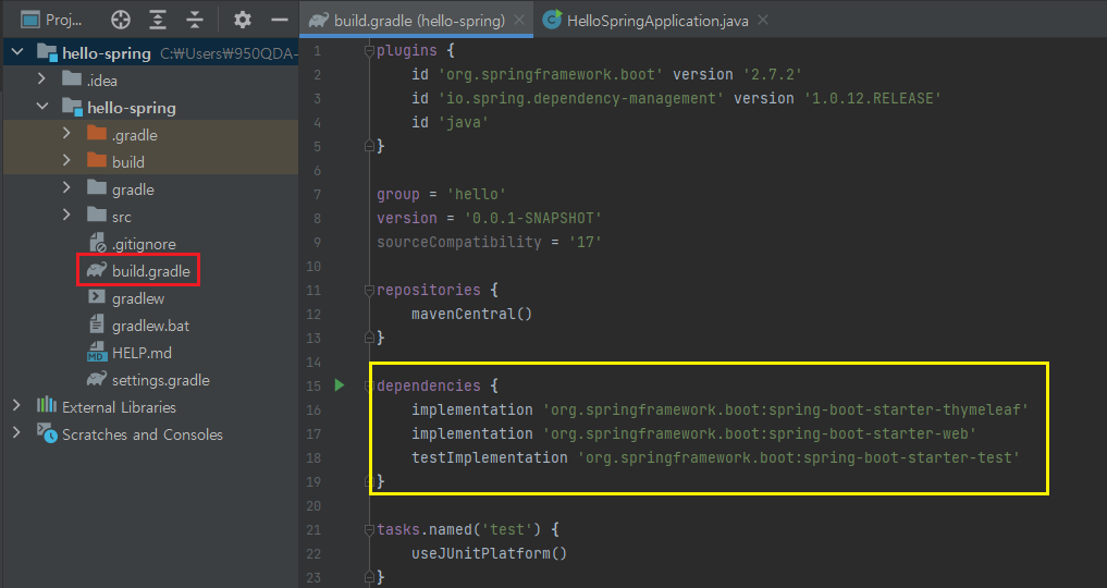 ▶ build.gradle 파일에서 gradle 전체 설정을 확인할 수 있음