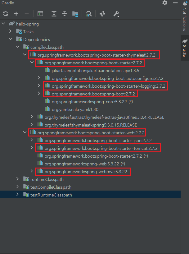 → spring-boot-starter-tomcat : 톰캣(웹 서버)