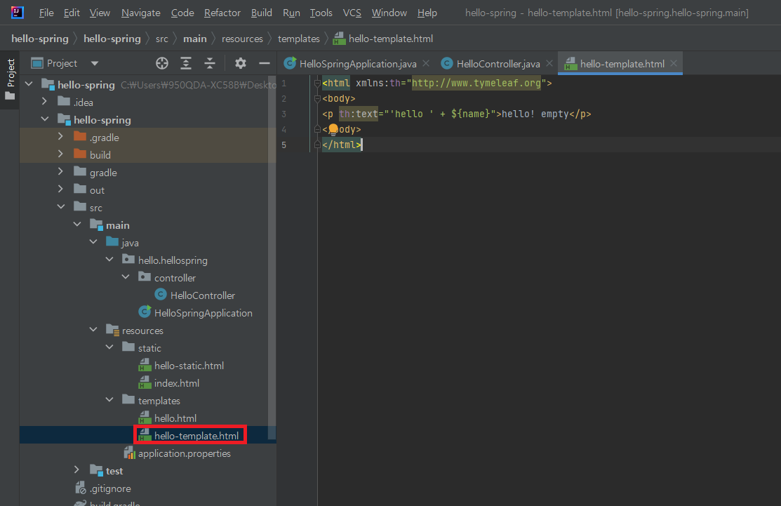 ▶ resources/template/hello-template.html 파일을 생성해 View 파일 생성