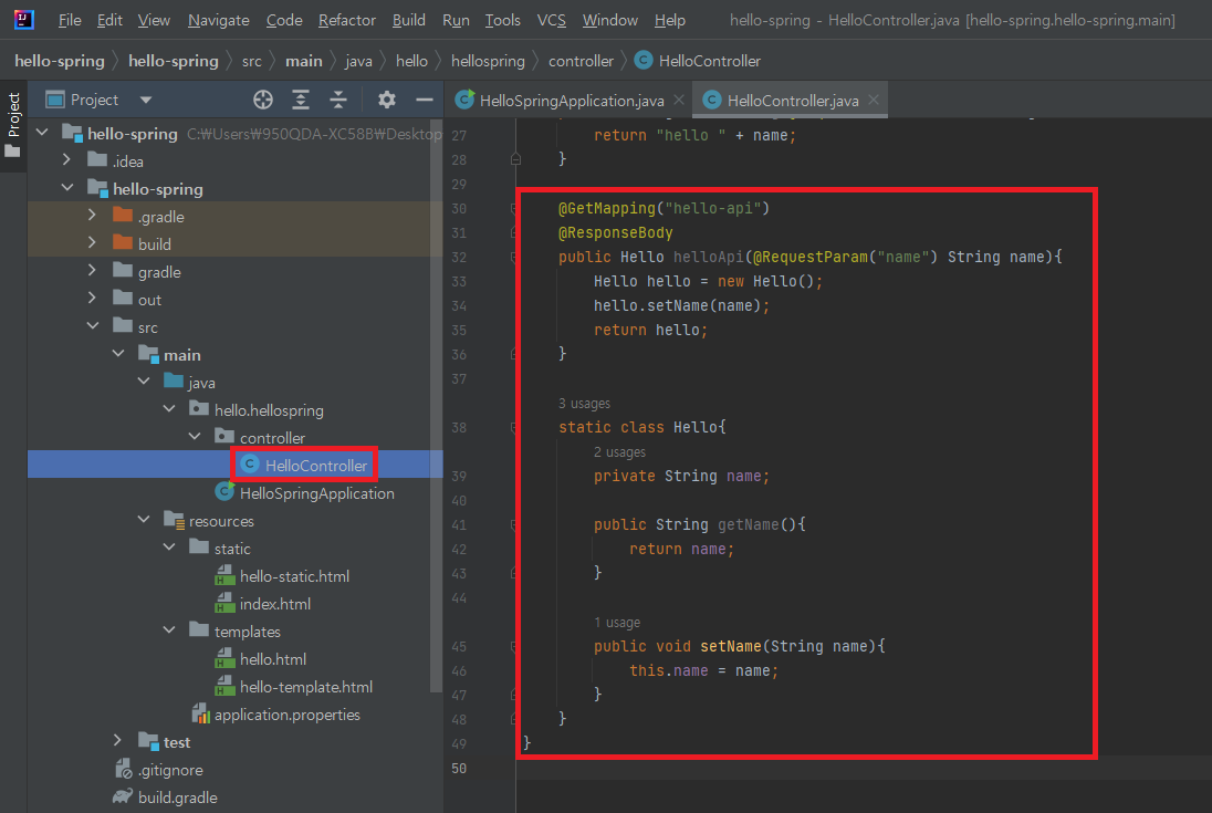 @ResponseBody를 사용해 localhost:8080/hello-api 요청