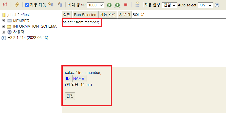 ▶ select * from member : member 테이블이 정상적으로 만들어졌음을 확인