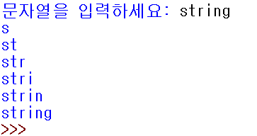 문자열을 하나 입력받아 입력된 문자열의 길이만큼 반복하면서 한 글자씩 추가되며 출력하는 프로그램을 작성해보자.