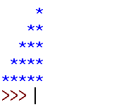 사용자에게 특수 문자 하나를 입력 받아 높이가 5인 삼각형을 만드는 프로그램을 작성해보자.