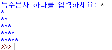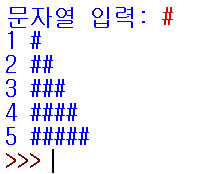 ▶ print(ch*i) : 사용자가 입력한 문자열에 반복문에 저장된 값이 함께 출력됨