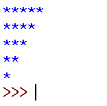 ▶ for i in range(5, i, -1) : i값에 5부터 i까지 역순으로 반복함