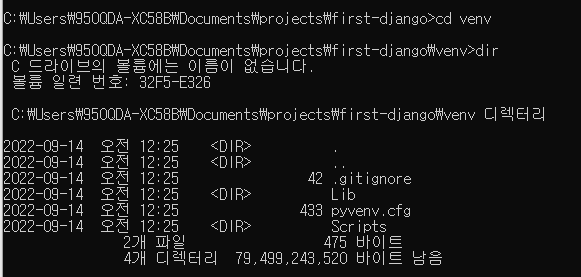 ▶ cd .. : 상위 디렉터리(first-django)로 이동