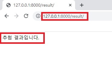 ▶ http://127.0.0.1:8000/result/에 접속한 모습