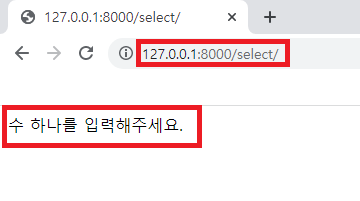 ▶ http://127.0.0.1:8000/select/에 접속한 모습