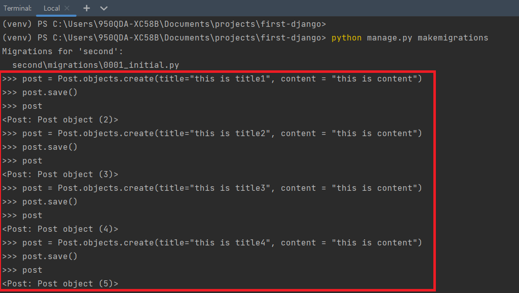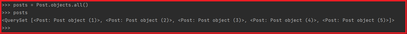 ▶ posts = Post.objects.all() : 생성된 레코드 전체 확인