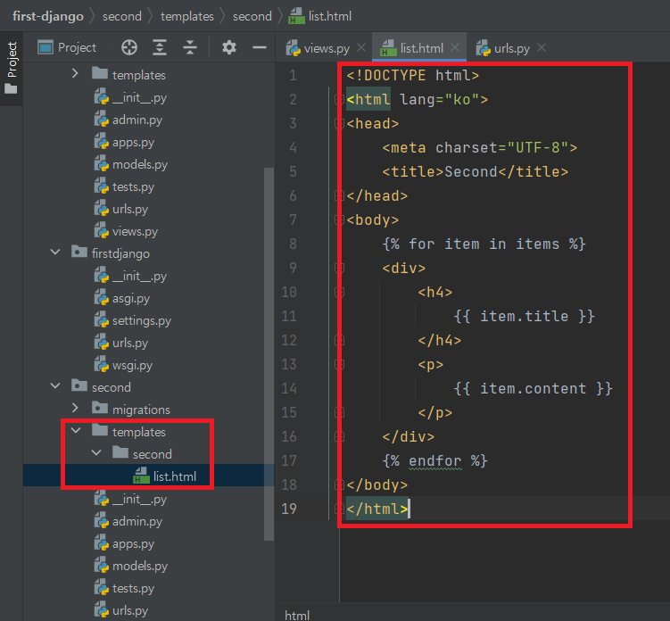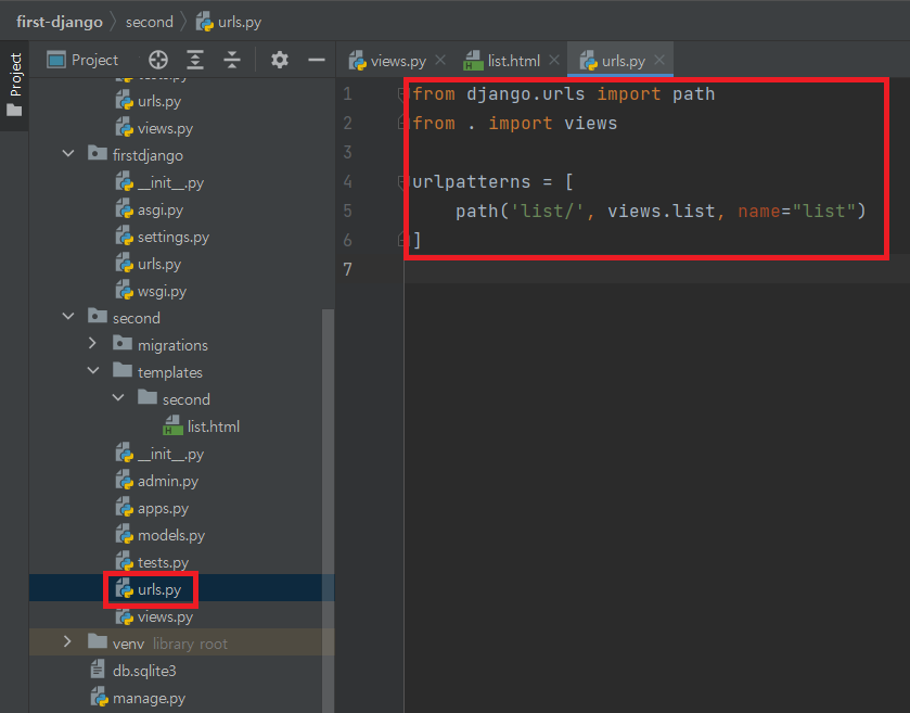 ▶ 기본 경로/list에 접속하면 views.py 파일에 있는 list 메소드를 호출